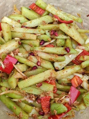 - Sel naturel non traité : 2 % du poids (chouchou+piments+grenade+oignon)