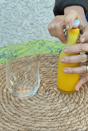 - Verser dans un bocal à joint puis fermer le bocal. Il est important d’utiliser un bocal à joint afin de garder le maximum de gaz carbonique dans le bocal.